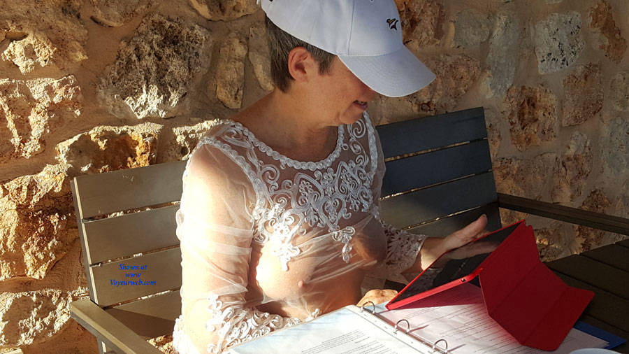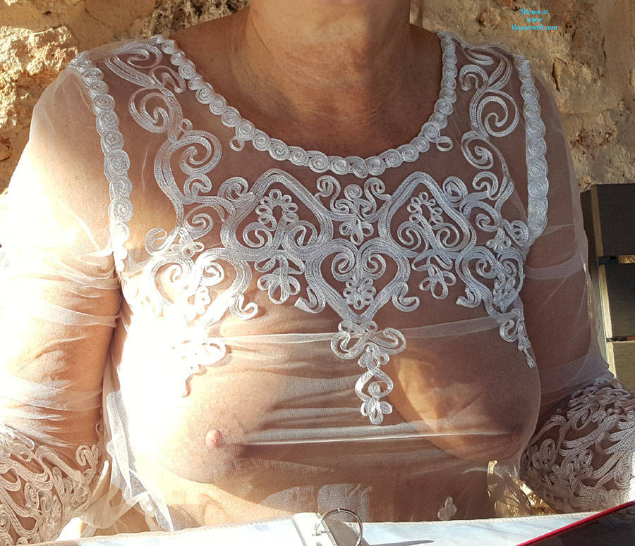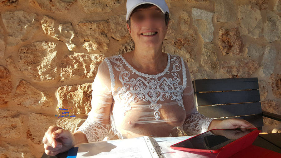 Hi Guys, My amazing wife in her amazing see-thru top while on holiday in Mallorca... She has amazing boobs.... Love to here all your comments and please vote for her.... You will get more!